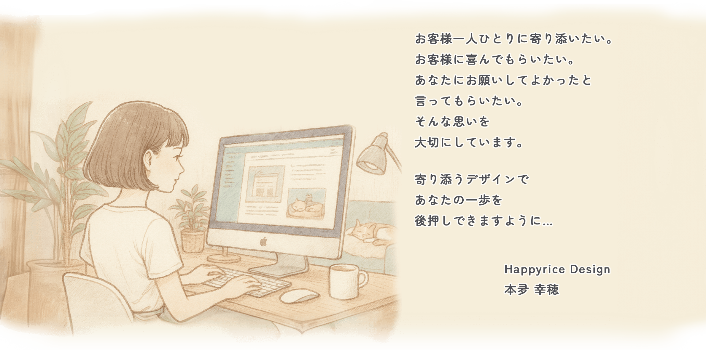 今回HP制作をお願いして、本当に良かったと感じています。さほさんの誠心誠意向き合ってくれる姿勢に絶対的な信頼が持てて、終始安心してお任せできました。ほぼ丸投げのような状態だったにもかかわらず、私の意図を的確に汲み取ってくださり、いくつか提案をしていただいたおかげで、頭の中にぼんやりと描いていたものが形になり、想像以上の素敵なHPが完成してとても嬉しいです。